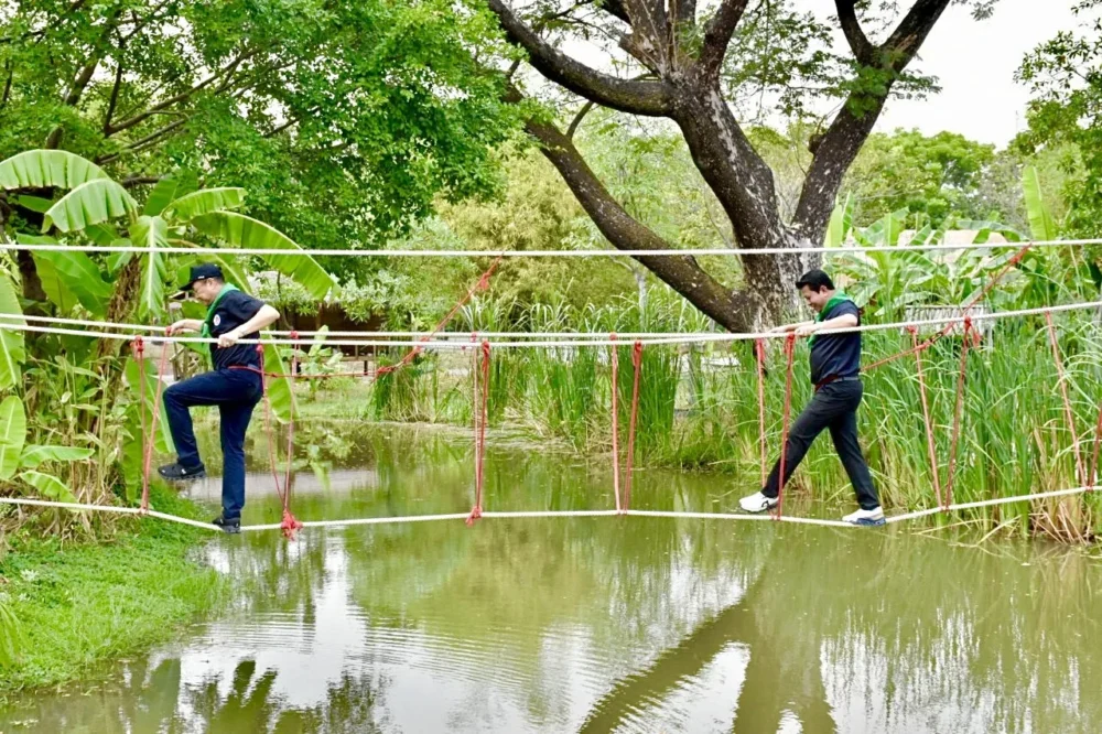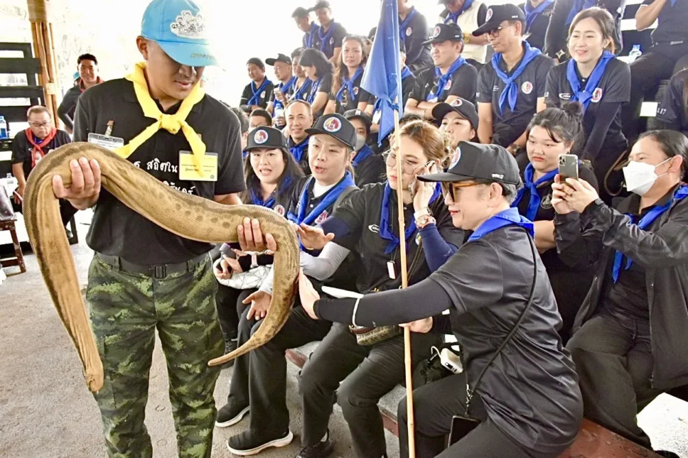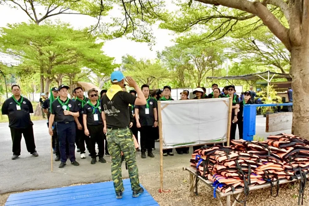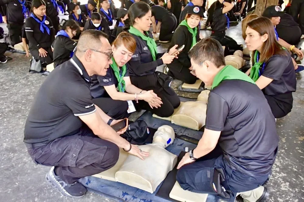 ภาคเช้า ผู้เข้ารับการอบรมเข้าฝึกปฐมพยาบาลเบื้องต้น การช่วยชีวิตด้วยการทำ CPR และการใช้เครื่อง AED ก่อนแบ่งกลุ่มเข้าฐานการเรียนรู้ภาคสนามรวม 11 ฐาน ครอบคลุมการแก้ไขปัญหาตามภูมิสังคม ตั้งแต่การบริหารจัดการน้ำท่วม–น้ำแล้ง การเสริมสร้างเศรษฐกิจครัวเรือน การจัดการขยะ การฟื้นฟูสิ่งแวดล้อม ตลอดจนการฟื้นฟูดินเสียและน้ำเสีย เพื่อการพัฒนาชุมชนอย่างยั่งยืน