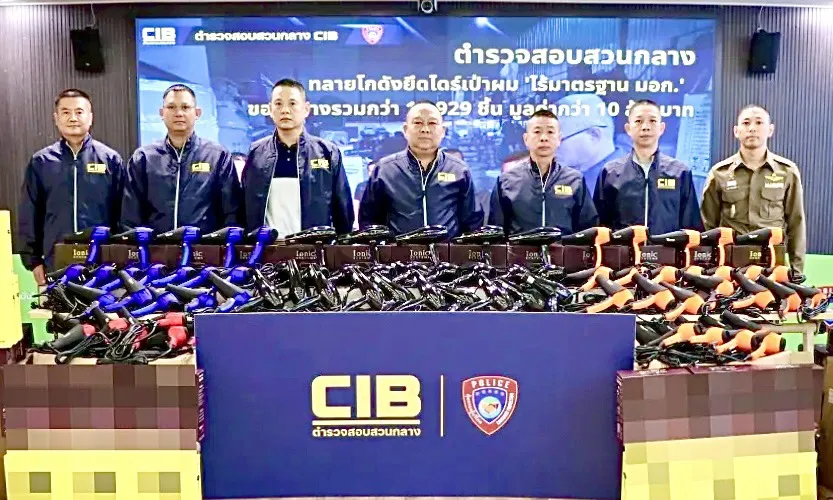 ตำรวจปคบ. บุกทลายโกดังใหญ่กลางกรุง ยึดไดร์เป่าผม–เครื่องหนีบผม–หวีไฟฟ้า กว่า 13,929 ชิ้น มูลค่ารวมกว่า 10 ล้านบาท หลังพบสินค้าลักลอบนำเข้า ไม่มีเครื่องหมาย มอก. อันตรายถึงชีวิต