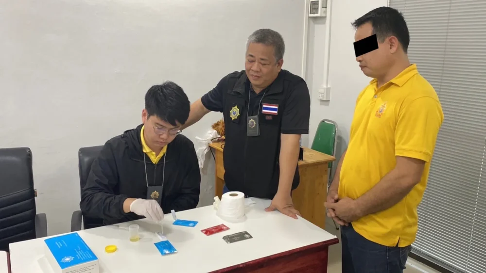 ผลการตรวจค้นไม่พบสิ่งผิดกฎหมายในตัว แต่พบว่ามี ขวดปัสสาวะปลอม ที่เจ้าตัวเตรียมไว้เพื่อหลีกเลี่ยงการตรวจจริง เจ้าหน้าที่จึงควบคุมแล้วให้ปัสสาวะใหม่