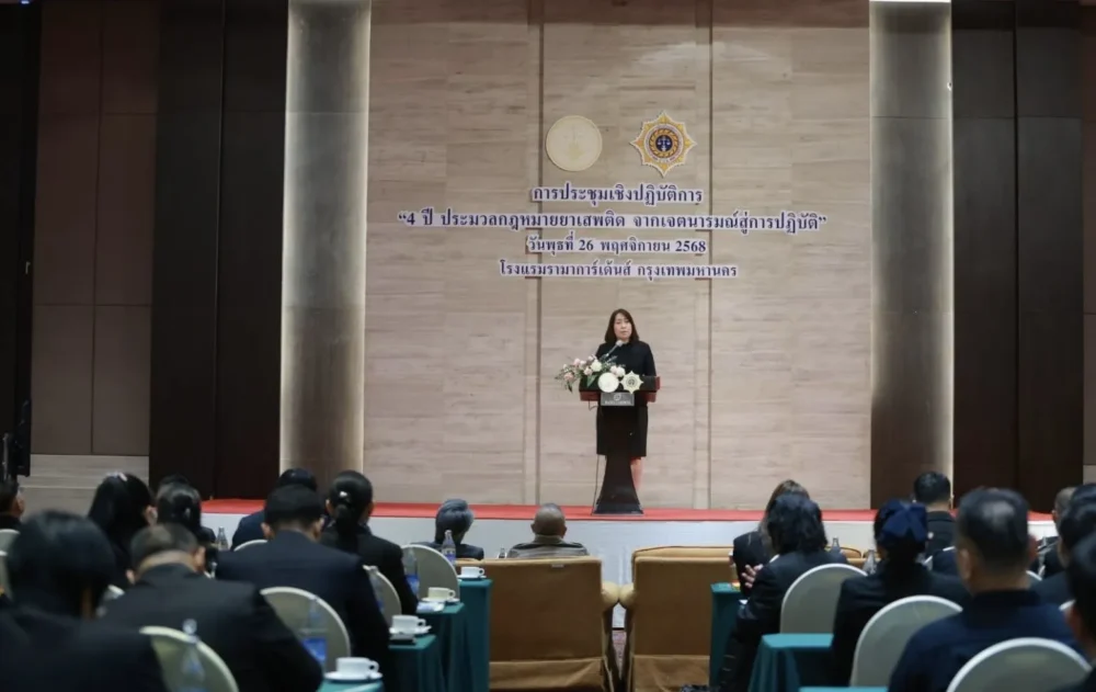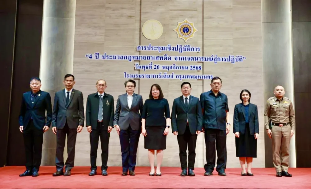 ในโลกที่เครือข่ายค้ายาเสพติดเคลื่อนตัวรวดเร็วราวกระแสน้ำเชี่ยว ประเทศไทยเองก็ไม่มีทางเลือกอื่น นอกจากต้องอัปเกรดเครื่องมือรับมือให้แหลมคมขึ้นทุกวัน และนั่นคือหัวใจของเวทีถอดบทเรียน “4 ปี ประมวลกฎหมายยาเสพติด” ที่กระทรวงยุติธรรมเปิดพื้นที่ให้ทุกหน่วยงานที่เกี่ยวข้องกว่า 35 แห่งมารวมตัวกัน เมื่อ 26 พฤศจิกายน 2568 ณ โรงแรมรามาการ์เด้นส์ กรุงเทพฯ